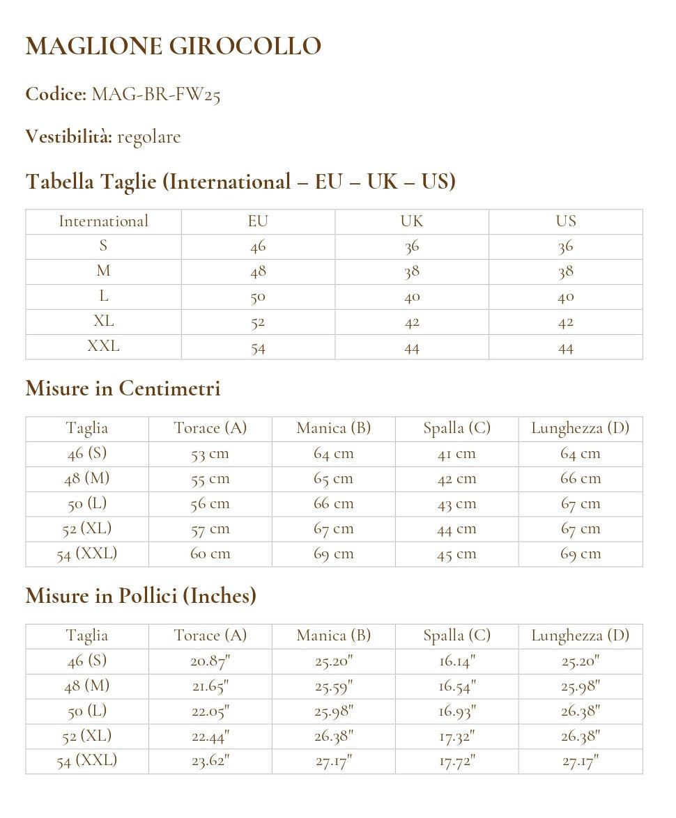 Brescia es un jersey de cuello redondo con mangas largas, confeccionado con una mezcla de alta calidad que ofrece suavidad, ligereza y calor natural. Presenta mangas raglán, que aportan una silueta más fluida y un ajuste cómodo. Su diseño limpio y atemporal lo convierte en una prenda versátil, perfecta como básico para el invierno. Ofrece suavidad, calor y un estilo minimalista, ideal para múltiples ocasiones.